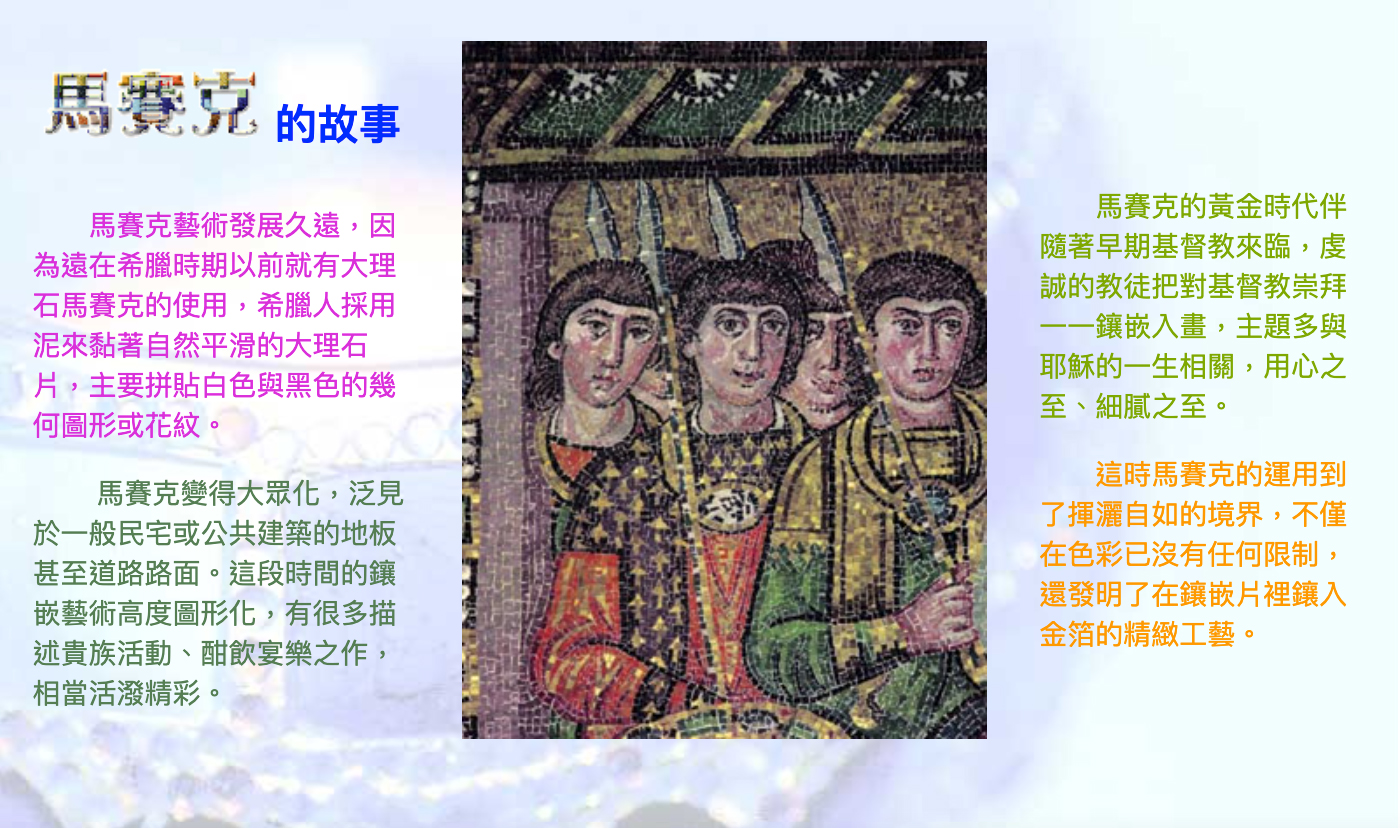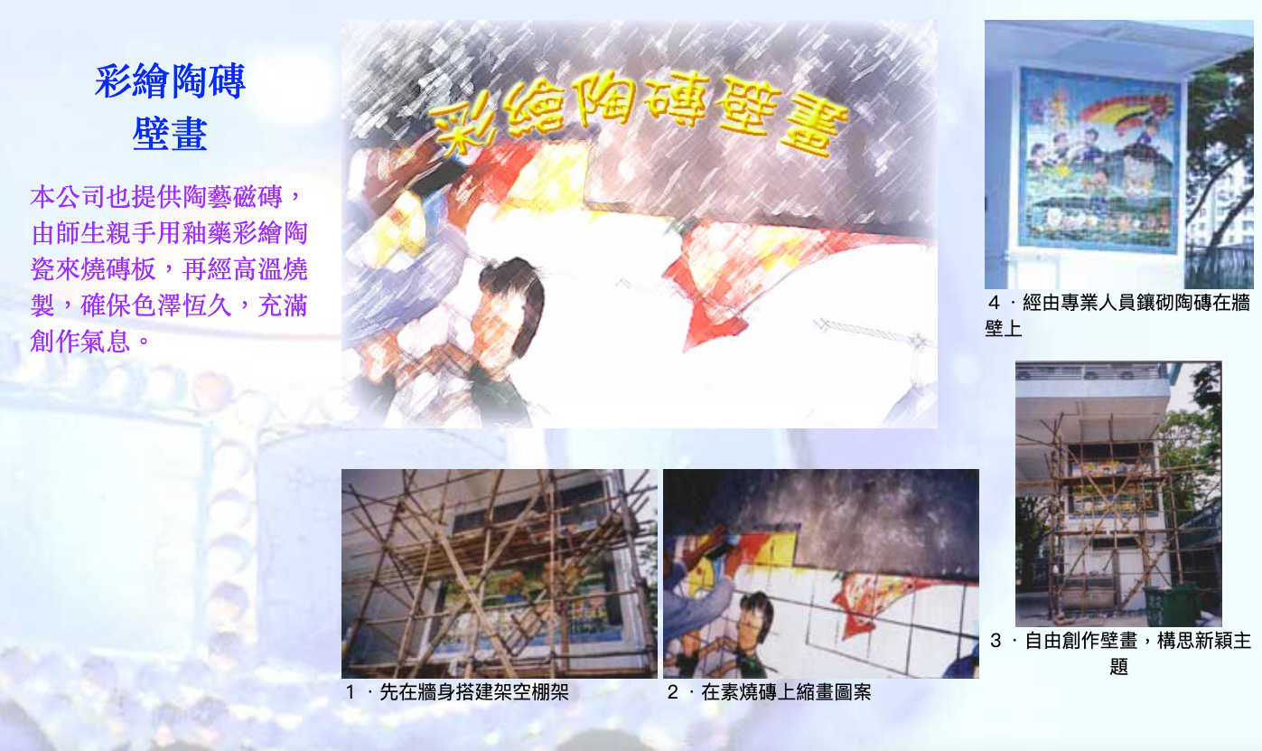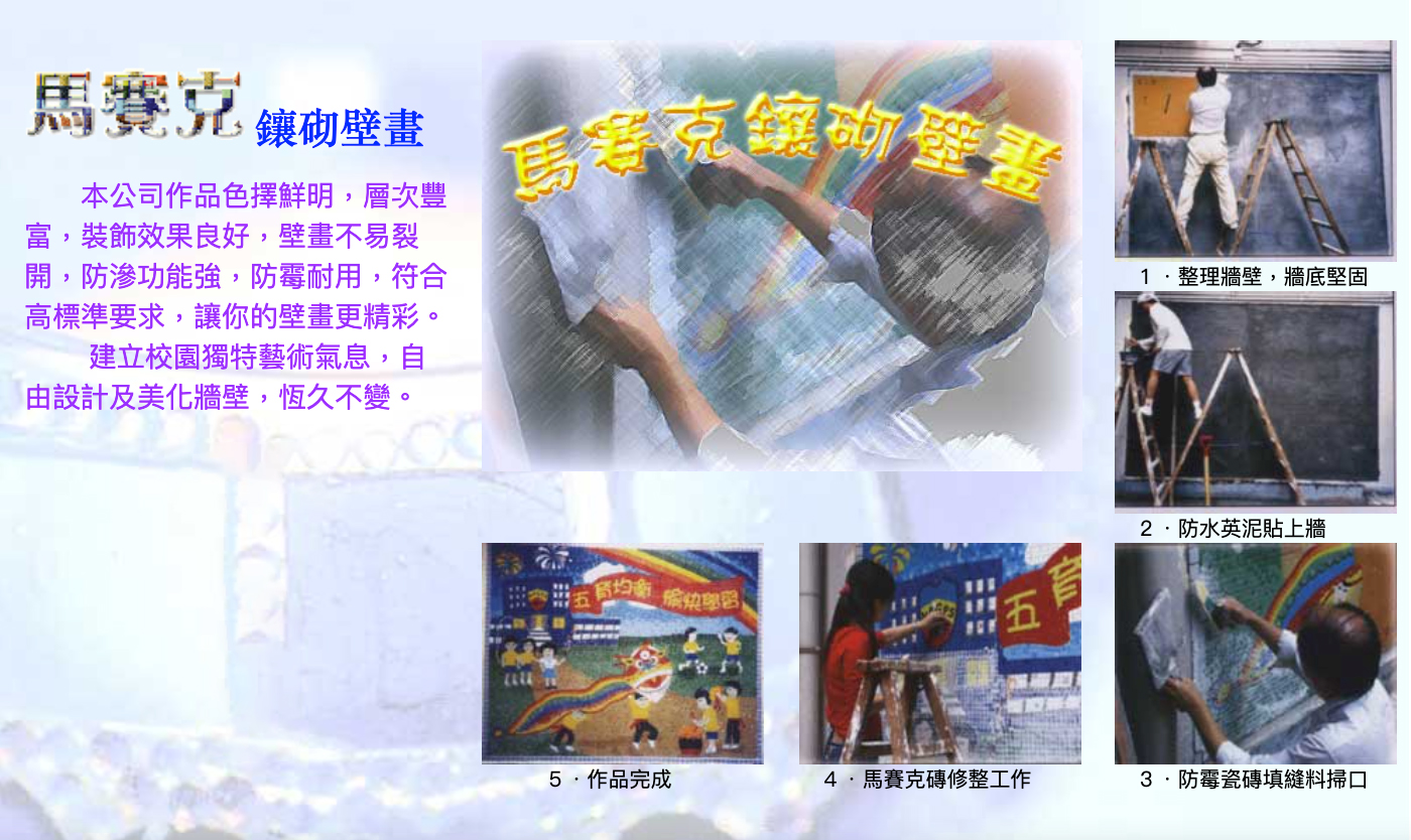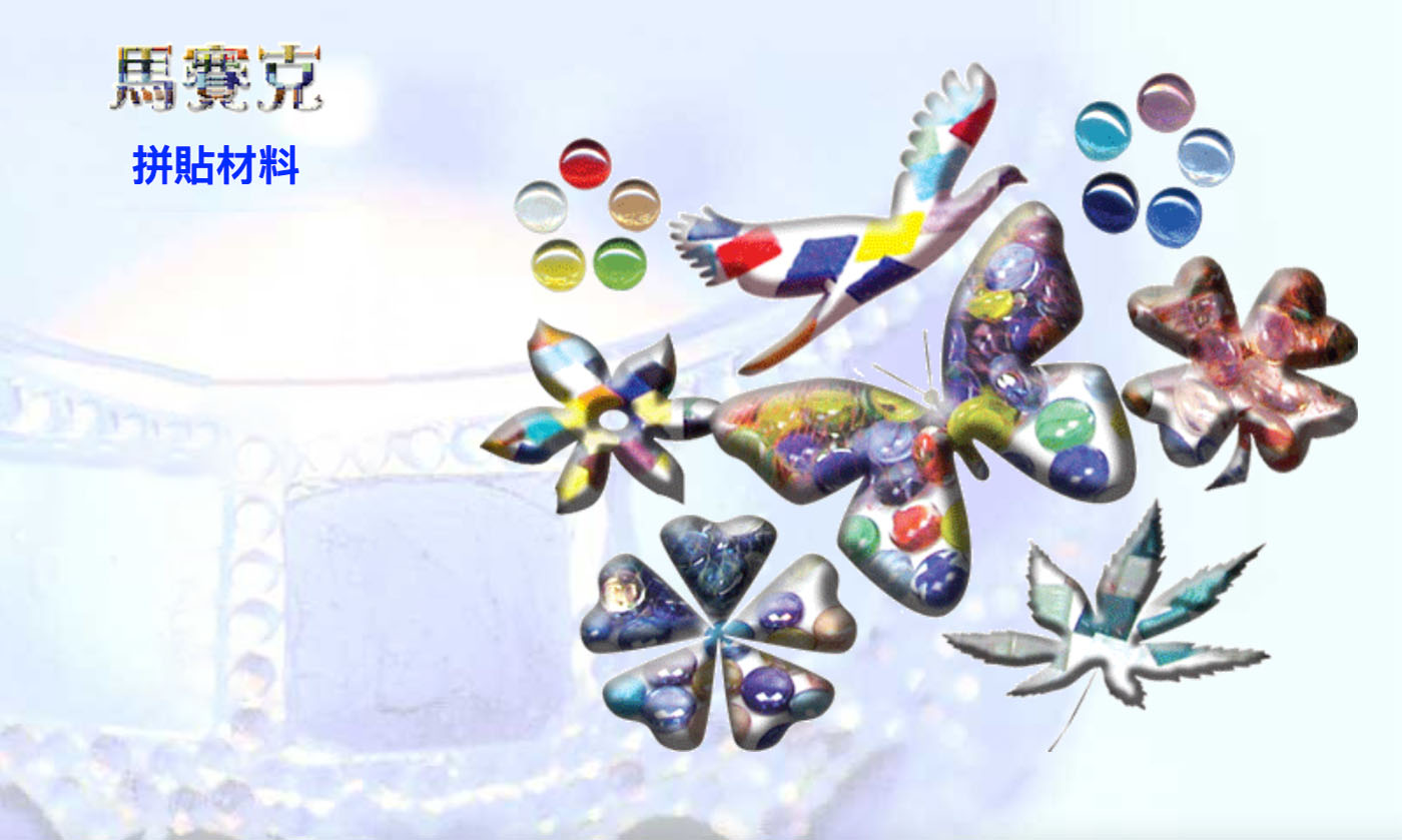 ( 二 ) 運用電腦設計,圖案更顯精彩,材料新穎豐富,包括玻璃石、幻彩石、纖維馬賽克、釉色石、雲母玻璃片等,多達數佰種色系,大小尺寸齊備。