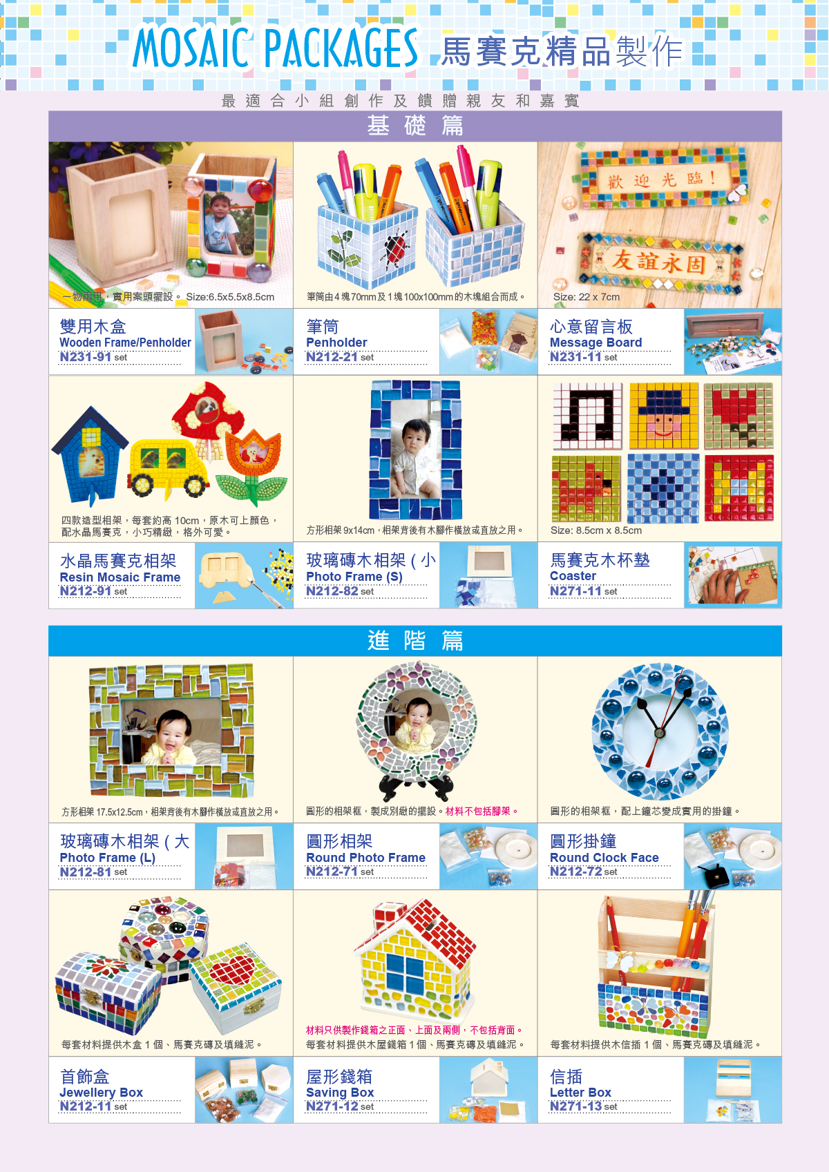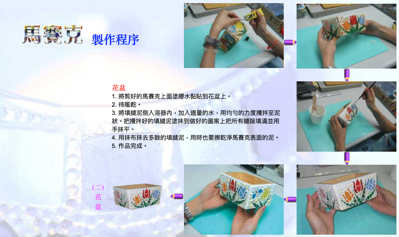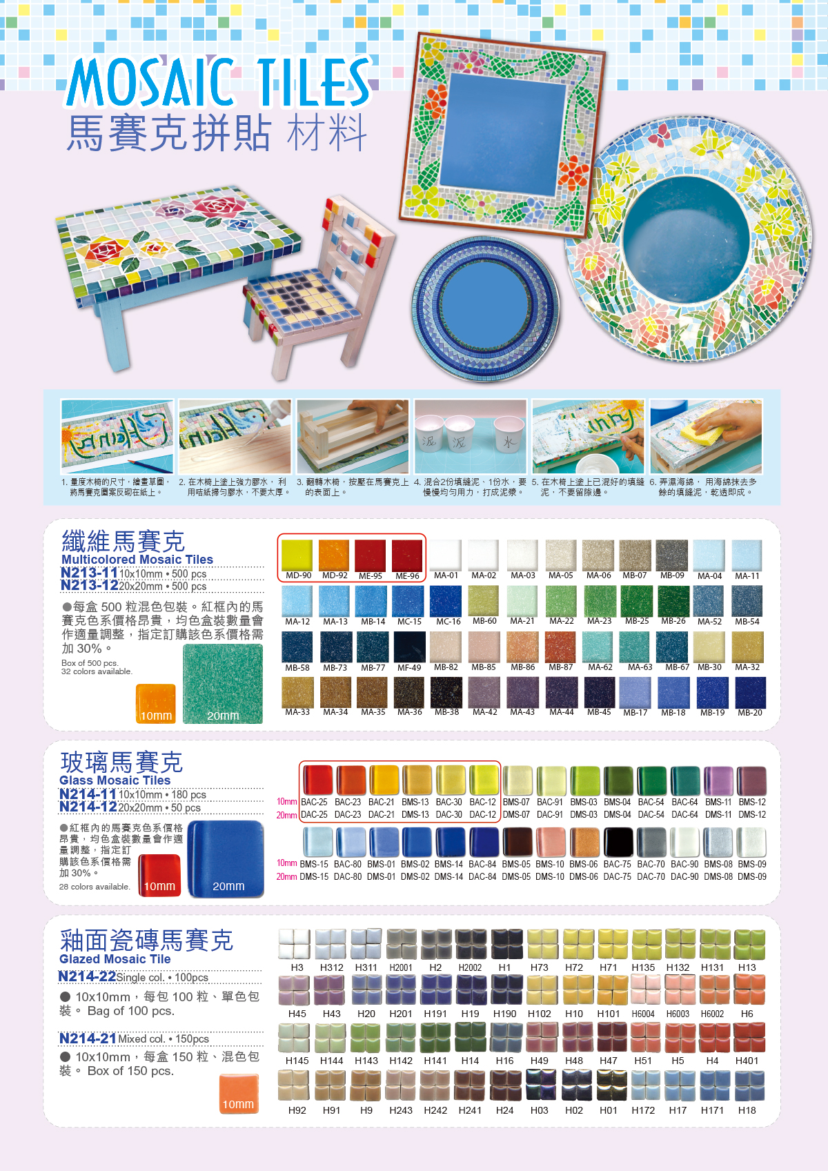 色彩繽紛的馬賽克磚能拼出不同配搭的圖形,製作成獨一無二的馬賽克手作精品。